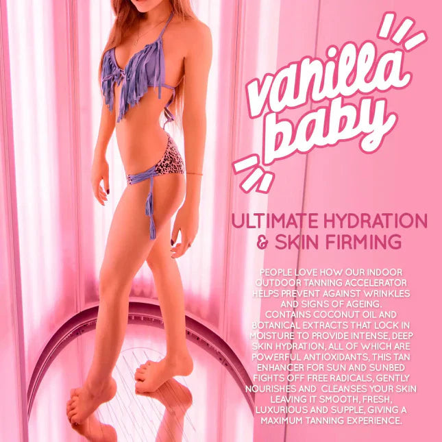 Whether you're tanning outdoors or using a sunbed, Vanilla Baby delivers a radiant finish without compromising skin care. Its creamy, fast-absorbing formula makes every application feel indulgent, while helping you achieve a long-lasting golden glow.